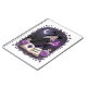 An enchanting digital illustration featuring a young witch with silver hair and a floral-trimmed hat. She is shown brewing magic, holding a glowing purple potion bottle while an open spellbook titled "Midnight Magick" sits before her. The scene is set within a decorative purple floral frame under a crescent moon, creating a whimsical and mystical atmosphere. With its clean linework and vibrant purple and black color palette, this artwork is perfect for fantasy lovers.