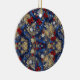 This ornament features a rich and elegant Christmas pattern filled with gold flourishes, delicate white snowflakes, and festive red bows, all set against a deep navy-blue background. Curving blue ribbons weave throughout the design, adding movement and depth, while the gold accents bring a warm, regal glow. Together, the colors create a bold, luxurious holiday look that feels timeless and festive.