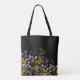 This lovely bohemian inspired "Midnight Mauve" tote bag is embellished with a beautiful garden of painted flowers and leaves. Vibrant lilac, purple and mauve flowers in a garden of muted green and olive foliage. Customizable in your choice of background color, size and style options. Unique, functional and very stylish.