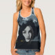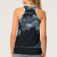 A hauntingly beautiful portrait of a woman emerging from swirling midnight clouds, blending mystery and elegance in monochrome tones. Subtle golden accents on the horizon add a touch of warmth to this dreamy, artistic design—perfect for a women’s tank top that celebrates depth, emotion, and bold feminine expression.