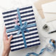 Midnight Navy Blue and White Stripes Wrapping Paper