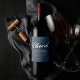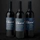 Midnight Navy Romance | Blue Satiny Grunge Damask Wine Label