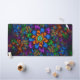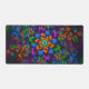 Step into a world of electric nature with this Midnight Neon Garden fractal desk mat. This captivating design features a central radiant flower surrounded by an intricate, sprawling meadow of glowing fractal clusters. The rich color palette—composed of deep sapphire blues, vivid emerald greens, and burning amber oranges—pops brilliantly against a dark, moody background, creating a stunning depth of field.