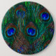 Midnight Peacock Feathers Etching Style Decor Pinback Button