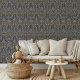 Transform your space with the opulent beauty of the Midnight Peacocks Art Nouveau Wallpaper. This striking wallpaper features an intricate design inspired by the Art Nouveau era, showcasing majestic peacocks surrounded by elaborate floral patterns. The rich color palette of deep charcoal gray, golden yellow, and soft ivory creates a dramatic and luxurious ambiance.