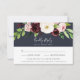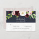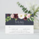 Elegant watercolor floral RSVP card features a cluster of blush pink, burgundy marsala and ivory blossoms accented with lush green botanical foliage. Personalize with your desired RSVP date as well as custom accept and decline wording, and add your meal selections or entree choices beneath. Designed to match our Blush Romance and Midnight Romance wedding and special event collection.