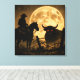 A striking and atmospheric "Gothic Western" silhouette that captures the haunting soul of a dark frontier. Under the glow of a massive, textured moon, a lone cowboy on horseback faces off against a powerful bull with glowing, hellish eyes. This square canvas features a unique, heavy-grain finish—reminiscent of weathered burlap or antique textile—giving the piece a rugged, aged aesthetic. With its high-contrast shadows and deep amber tones, this render brings a bold, supernatural energy to any space.
