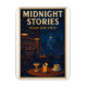 Escape into the night with “Midnight Stories – Book Bar Vibes”. This retro-modern poster captures the cozy charm of a book bar with glowing shelves, cocktails, and the dazzling New York City skyline at midnight. A perfect wall art piece for book lovers, city dreamers, and anyone who enjoys mixing nightlife energy with quiet reading moments. Ideal for decorating cafés, home libraries, or modern apartments.