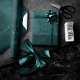 Midnight Teal Romance | Dark Satiny Grunge Damask Wrapping Paper