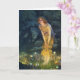 John Robert Hughes Midssumer Eve greeting card. Oil painting on canvas from 1908. Pre-Raphaelite painter John Robert Hughes painted a variety of different paintings detaling mythological and fantasy subjects. Midsummer Eve depicts a pretty young woman walking through the forest at night who stumbles upon a lively fairy dance. The fairies play at her feet waving glowing orbs and waving their hands. A pretty gift for fans of fairies, fantasy art, and Pre-Raphaelite paintings.