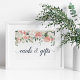 Designed to match our Midsummer wedding collection, this elegant floral sign directs guests to your card or gift table. Features "cards & gifts" in smoky blue-gray calligraphy lettering with a top border of pastel watercolor flowers and foliage in blush pink, ivory, peach, and sage green.