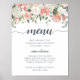Charming summer floral menu sign displays your dinner selections in chic calligraphy and traditional block lettering, accented by a top border of pastel watercolor flowers and foliage in shades of blush pink, peach and sage green. Designed to match our elegant Midsummer floral wedding collection.