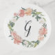 Floral monogrammed trinket tray features your single initial monogram in elegant calligraphy script, framed by a lush wreath of peach and blush pink peonies and pastel watercolor greenery.