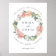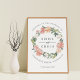 Welcome guests to your wedding with our Midsummer floral poster, featuring a wreath of watercolor flowers and foliage in peach, blush pink, ivory and mint green. Add your names, wedding date and custom welcome text using the fields provided.