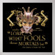 "Lord! What fools these mortals be!" - William Shakespeare (A Midsummer Night's Dream). A stylish design featuring this famous quote using carnivale/theater mask with flourishes for the person who is inspired by the classics.