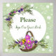 White, yellow, pink, yellow and blue Spring flowers in baskets and bouquets for wedding stationary theme