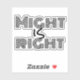 "Might is right": a starkly inspirational sticker rendered in classic black and white. This motivational saying serves as a potent reminder of the power of strength and determination. The simple yet impactful design ensures the message resonates clearly. Embrace the philosophy that might, when wielded justly, prevails. This sticker embodies resilience and the unwavering pursuit of one's goals. A daily affirmation that reinforces the idea that strength, whether physical or mental, can overcome obstacles.