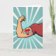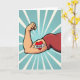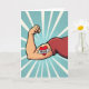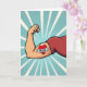 This design shows a strong, flexing arm in the center, drawn with thick outlines and a comic-style look that feels like a proud, affectionate salute ❤️. A short sleeve in deep red hugs the upper arm, and one fingernail has a small red accent that adds a sweet, cared-for detail. On the bicep, a large red heart is marked like a tattoo, suggesting a close bond you can almost feel in the confident pose. A white ribbon runs across the heart, and the text “MOM” sits on it in black, all-caps letters that are easy to spot. The word is centered on the ribbon, with the heart and arm taking up most of the mid-area so the message reads at a glance. Behind everything, a radiant burst spreads outward, like a spotlight that makes the gesture feel celebratory and warm 🌼. The background rays alternate between creamy light tones and teal blue, all pointing back toward the arm and heart.