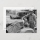 Migrant agricultural worker getting his car ready to move on in search for work, Berrien County, Michigan. Great old photo with suitcase strapped to front fender of antique car. FSA photo taken in 1940 by photographer John Vachon.