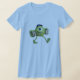 The material is a great quality that is hard to find with most tee shirts. Fabric was not see-through or thin at all, but was also very soft and comfortable. The shirt description states that it runs a little small, so I sized up one size for a perfect fit! I would definitely buy this type of tee shirt again because I love the fit and high quality fabric that I cannot find anywhere else. The printing was perfect and just as pictured. Loved the cute quote and really enjoy the tee in both the quality and design. I love quirky typography designs and funny quotes and I am extremely pleased with the overall quality and value I get at Zazzle!