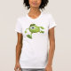 The material is a great quality that is hard to find with most tee shirts. Fabric was not see-through or thin at all, but was also very soft and comfortable. The shirt description states that it runs a little small, so I sized up one size for a perfect fit! I would definitely buy this type of tee shirt again because I love the fit and high quality fabric that I cannot find anywhere else. The printing was perfect and just as pictured. Loved the cute quote and really enjoy the tee in both the quality and design. I love quirky typography designs and funny quotes and I am extremely pleased with the overall quality and value I get at Zazzle!