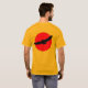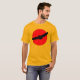 A black, soaring condor in front of an orange sun on a yellow t-shirt.
