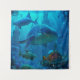 Colorful Miles Under the Sea Art Illustration. Steampunk and marine life with sharks, fish, and corals.
