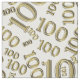 This design is your age, 100, in a gold and white graphic number pattern with milestone number 100 scattered in varied sizes and angles in an all-over print.