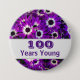 This beautiful button lets the world know that someone special is celebrating a milestone birthday. This button features a photo which captures bright purple flowers. The petals display a vibrant purple color along with black and white centers. A light purple banner provides the solid background for you age which can quickly and easily be personalized.