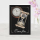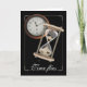 Milestone Birthday Card - A clock and an hourglass signify how quickly time has flown before reaching a birthday milestone. You can edit the caption on the front, for example: "Happy 60th". On the inside, the first line reads "Celebrating your 60th" ... DON'T FORGET TO CHANGE THE NUMBER to the year of your choice. Clock photo and hourglass illustration by artist Marilyn (Tidland) Straus.