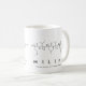 Milina spelled out in amino acids as M I L I N A (Methionine Isoleucine Leucine Isoleucine Asparagine Alanine) on a mug for the scientist in you.