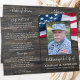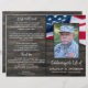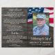 Honor the memory of your beloved veteran with our Military Celebration of Life Funeral Program. This thoughtfully designed keepsake provides a touching tribute to those who have dedicated their lives to serving our country. The front cover features a classic American flag motif set against a backdrop of rustic wood, symbolizing strength, resilience, and patriotism.