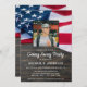 Plain white envelopes are included with paper invitations and will come to fit the invitation size you select. If you don’t need the envelopes, you may choose to not receive them by selecting the dropdown below "Envelopes" and choosing "None." If you’d like to have a design on your envelopes, you can browse all of these available envelopes to find the design that complements your Military Going Away Party Patriotic American Flag Invitation.