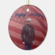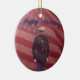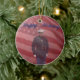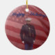 Easily customize this military Happy Holiday's ornament with text for your friends, family or loved ones. A proud soldier stands erect in front of our waving American flag.