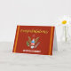 Congratulate that special Marine with this colorful retirement card. The front displays the official Marine colors along with our country's defense emblem. "Congratulations" is in a rich gold, beveled script. All other text is easily edited using the template. If other changes are desired (different type fonts, color, size, or placement) select "personalize" then select "Edit using Design Tool." Other card sizes are available -- see all options on the right. Comes complete with envelopes.