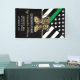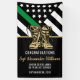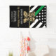 This design features a military flag with black and white stripes, and a thin green line stripe as well. The army boots and gold text sits above all of the party details for the retiring sergeant, captain, soldier, lieutenant or general's retirement party details.