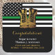 Thin Green Line Military Retirement Party Stickers. Celebrate years of dedicated service, your military retirement and host friends and family to your military party with this modern Thin Green Line Flag with Gold Army Boots Military Retirement favor stickers. USA American flag design in Police Flag colors, modern black green white and gold design. This military retirement party napkins is also perfect for military graduation, soldier going away part, deployments and homecoming, change venue in personalization. See our collection for matching military retirement invitations, gifts, military retirement party favors, and supplies. COPYRIGHT © 2021 Judy Burrows, Black Dog Art - All Rights Reserved. Military Retirement Party Thin Green Line Boots Square Sticker