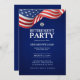 Celebrate the remarkable journey of a true American hero with our Military Retirement Invitation, beautifully designed in navy blue, and adorned with the iconic red, white, and blue American flag. Paying tribute to the incredible transition from active duty to civilian life, this invitation features a patriotic US American flag.