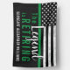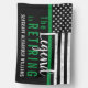 This retirement design features a military flag with black and white stripes, and a thin green line stripe as well. "The Legend is Retiring" text sits above the name of the retiring sergeant, captain, soldier, lieutenant or general.