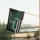 This item arrived so quickly, which is unusual for a custom-made item! The quality is quite good. I really like how the words and graphics are printed on both sides, so no matter which direction you see the flag from, it looks the same. Other flags I have do not have that and I think it's a really nice touch I am very impressed with this artist and will no doubt be ordering again in the future. Very nicely done. Vivid colors; accurate description of the item. It looks just as it does in the photo.