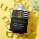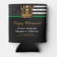 Thin Green Line Military Retirement Can Cooler. Celebrate years of dedicated service, your military retirement and host friends and family to your military party with this rustic Thin Green Line Flag with Gold Army Boots Military Retirement party favors can coolers. USA American flag design in Military Flag colors, worn black green white and gold design. This military retirement napkins is also perfect for military graduation, soldier going away part, deployments and homecoming, change venue in personalization. See our collection for matching military retirement invitations, gifts, military retirement party favors, and supplies. COPYRIGHT © 2021 Judy Burrows, Black Dog Art - All Rights Reserved. Military Retirement Thin Green Line Flag Army Can Cooler