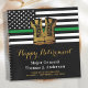 Thin Green Line Military Retirement Guest book. Celebrate years of dedicated service, your military retirement and invite friends and family to your military party with this modern Thin Green Line Flag with Gold Army Boots Military Retirement Invitation. USA American flag design in Police Flag colors, modern black green white and gold design. This military retirement invitation is also perfect for military graduation, soldier going away part, deployments and homecoming, change venue in personalization. See our collection for matching military retirement gifts, military retirement party favors, and supplies. COPYRIGHT © 2021 Judy Burrows, Black Dog Art - All Rights Reserved. Military Thin Green Line Boots Retirement Guest Notebook