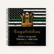 Thin Green Line Military Retirement Guest Book. Celebrate years of dedicated service, your military retirement and invite friends and family to your military party with this rustic Thin Green Line Flag with Gold Army Boots Military Retirement Invitation. USA American flag design in Police Flag colors, worn black green white and gold design. This military retirement invitation is also perfect for military graduation, soldier going away part, deployments and homecoming, change venue in personalization. See our collection for matching military retirement gifts, military retirement party favors, and supplies. COPYRIGHT © 2021 Judy Burrows, Black Dog Art - All Rights Reserved. Military Thin Green Line Flag Retirement Guest Notebook