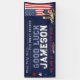 Personalize this patriotic US Military combat boots & American flag going away / farewell party banner, 2.5x6 ft in size, with "When Duty Calls, The Brave Answer - Good Luck [Recruit's Name] - We are SO PROUD (underlined) of you!" wording in rustic distressed typography, drip USA flag, watercolor US flag combat boots, and red, white, and blue stars over a deep navy blue background. Such a great way to send off your brave Airman (Air Force), Guardian (Space Force), Soldier (Army), Marine (Marines), Sailor (Navy), or Coast Guardsman (Coast Guard) who is heading to basic training, boot camp, or even deployment! ♥ Lovingly designed by an Air Force Mom ♥ This template can be easily personalized for any branch of military service! Need to adjust placement or make fonts bigger/smaller to fit the space provided? No problem! Simply click the blue "Edit using design tool" button at the bottom of the "Personalize" window, click on the element that needs adjusting, and click the "done" button at the top right corner to complete. **Our son recently completed his service as a USAF F-16 Crew Chief, so I too, had a hard time finding appropriate invitations, party decorations, encouragement cards during basic / personalized graduation gear and more! All my designs, from the farewell party to the training process (and incredible graduation week!!), through active duty and coming home here in my Zazzle storefront, were created in honor of my son and all our brave military service personnel and families. See the full collection by clicking the blue “by FigLilyCo--military” link in the upper right hand corner of this screen, click my store name under my photo to find what you're looking for! **Custom design requests and template questions are ways welcome - click the "message" button, or email direct (with a quick response): contact@figandlilyco.com. ♥ From this proud military family to you and yours - we send our love, sincere blessings, and HUGE thanks for the service, courage, and sacrifice of your US Service Member ♥