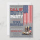 This rustic US Military boots & American flag deployment / overseas active duty base going away / farewell Party double- sided invitation with the saying "CALL OF DUTY PARTY" over gray background on front, and "When Duty Calls, The Brave Answer" design on back, is a great way to send off a brave Airman (Air Force), Guardian (Space Force), Soldier (Army), Marine (Marines), Sailor (Navy), or Coast Guardsman (Coast Guard) who is heading to deployment / to their new overseas Active Duty Base! ♥ Lovingly created by an Air Force Mom ♥ Featuring a gun metal gray background on both sides with drip USA flag, watercolor US flag combat boots, and vintage red, white, and distressed blue patriotic typography, it is an invitation template for you to easily personalize each line for any branch of service! Need to adjust placement or make fonts bigger/smaller to fit the space provided? No problem! Simply click the blue "Edit using design tool" button at the bottom of the "Personalize" window, click on the element that needs adjusting, and click the "done" button at the top right corner to complete. **Our son is a recent F-16 Crew Chief vet, so I too, had a hard time finding appropriate invitations and cards for BMT & Graduation & Active Duty - all my designs for the full training process, here in my Zazzle store, were created in honor of our son and all our brave military service personnel and families. See all my invitations / cards (available for print & ship or instant digital download for those in a rush) / clothing / vinyl graduation banners / and much more for BMT, Grad Weekend and beyond, available in my store by clicking the blue “by FigLilyCo-military” link in the upper right hand corner of this screen and then click my store name under my photo to see the entire collection. **Custom order requests are always welcome - click the "message" button, or email direct (with a quick response): contact@figandlilyco.com. ♥ From this proud military family to you and yours - we send our sincere blessings, and HUGE thanks for the service, courage, and sacrifice of your US Service Personnel ♥