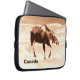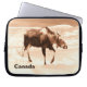 A monochrome (brown) image of a cow moose walking in snow. Text reading "Canada" also appears. Moose are year-round residents in many northern communities. Here in Anchorage there are about 1500 animals, along with wolves, brown bears and other wildlife.They are usually well-behaved. They often cross streets at the crosswalks after waiting for a walk signal. From a photo of a moose which wandered through my yard.