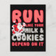 Another awesome gift idea from WeRunForFun! This is a funny original design made for your holiday-themed races in December. If you want to show your Christmas spirit without sporting a full costume, why not opt for this funny running design featuring Santa Claus himself!? The full design quote reads "Run like your milk and cookies depend on it" -- and Santa does look a bit desperate as he sweats along. Pick this up in time for your holiday stress-buster race, Santa Claus Dash, Frosty 5K, Egg Nog Jog, or whatever fun holiday race you've got coming up!