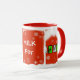 Here's a mug to go along with the plate of cookies for Santa. On this mug, we also included Santa's moustache smoosh area so he doesn't have to feel bad about dribbling with his moustache and beard when he drinks. :D This is customizeable in several ways. First, you can change it from "Milk" to say "Eggnog" or "Tea" or whatever you'd like it to say. Second....we have an area where you can list the name or names of the children who are leaving this for Santa. (Type each name on a separate line. Delete "Name" if you want a line blank.) Or....Just delete all the "name" area and type in "The Smith Family" if you wish. NOTE: We are showing this on a red ringer mug. But, it also looks good with a green trim or even a black trim.