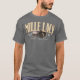 My 11 yo wore adult XL (5’7” 165#). The 8yo is small framed. She wore adult small and tied it in the back. Grandma wore adult large with long sleeve shirt underneath. Tall girl adult medium. Dark haired male adult large. Good quality dark Heather gray, Gildan brand shirt. -it was next up from basic choice and cost about $20 per shirt. Not too thick or thin. Washed and dried well, no major shrinkage. Not see-through. Can wear a bra under it fine. Screen print is just as shown and well done, front and back.