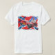 The shirt is good quality and fits just fine, but the colors of the printing are not as bright as in the sample photo. Not the best. The colors are a lot brighter in the sample photo; when I received the shirt they appeared faded. The red looks a little more pink and the blue is a lot lighter. N.B. I did not wash the shirt yet.
